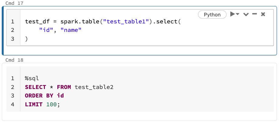 しかしDatabricksではデフォルトの言語は指定するものの、以下のようにセルにの先頭に「%言語」というマジックコマンドを記述すると別言語でも使用可能となっています。
