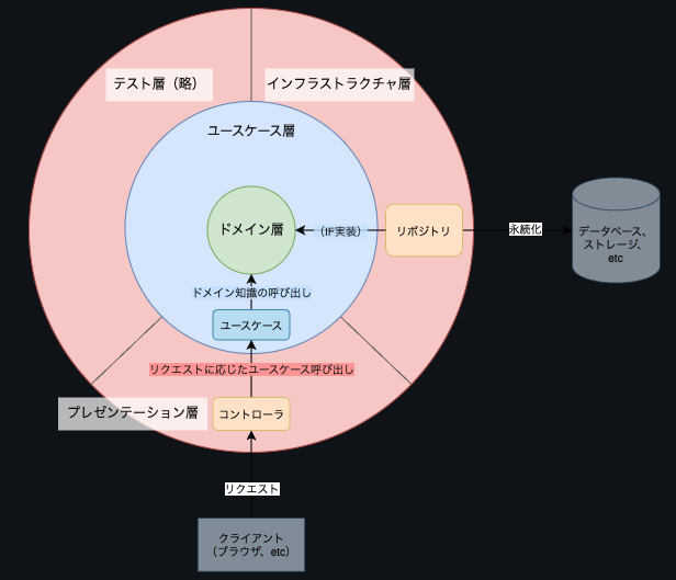 オニオンアーキテクチャを提案し、チーム内でどの層に何を書くべきか、書かないべきか、という議論が出来る状態を目指しました。(サンプルコードなど書いた)