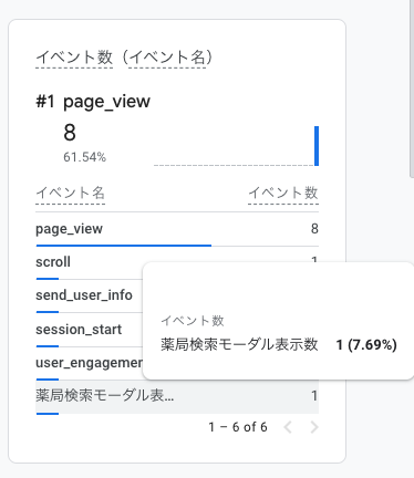 ユーザー行動によって発生したイベントとは、たとえば上記で解説した 薬局検索モーダルを開いた