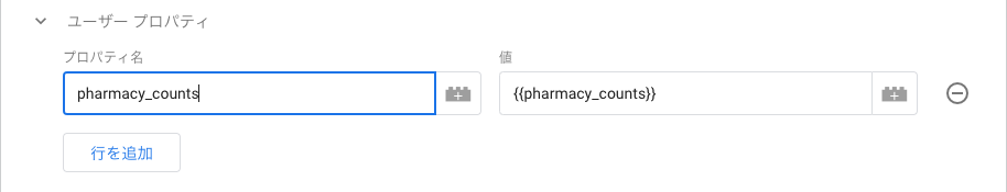 たとえば、先ほどのユーザープロパティにて ユーザーの所属薬局数