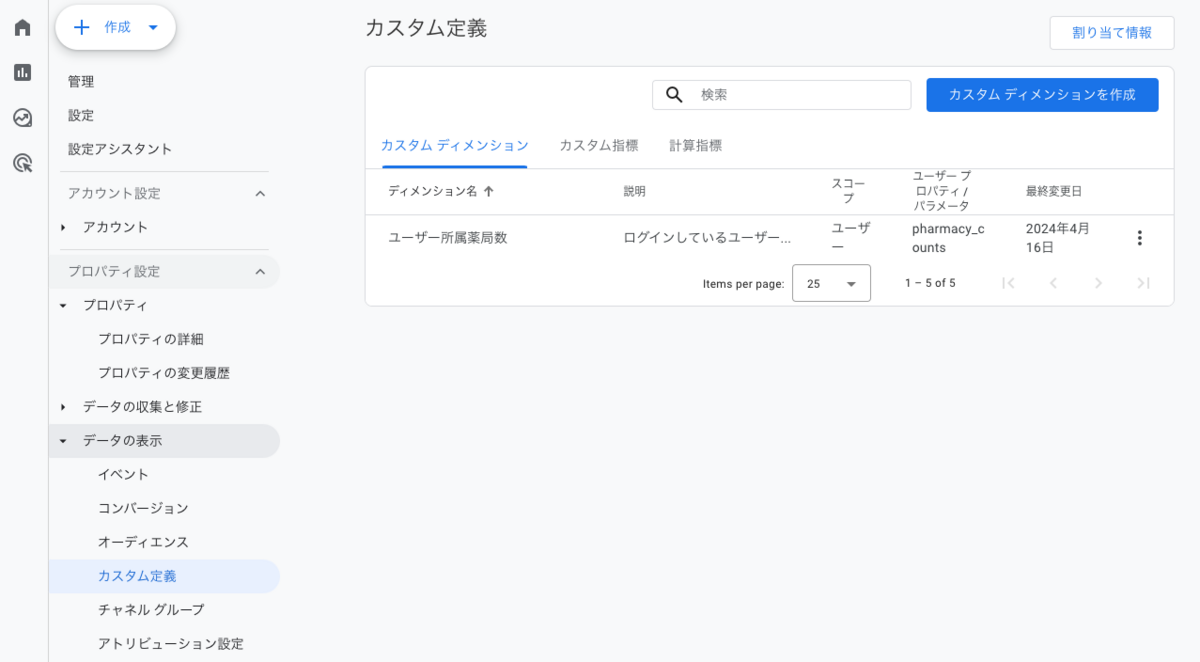 というカスタムディメンション名を作成しています。